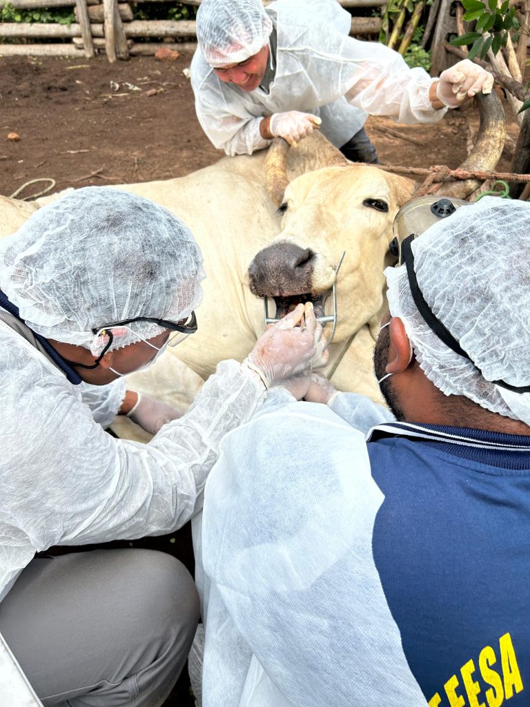 “A Adapi realiza a investigação de doenças que são de notificação obrigatória, estabelecidas na Instrução Normativa número 50 do Ministério da Agricultura e Pecuária (MAPA). No dia 14 de fevereiro, foi registrada uma notificação que informava que um bovino tinha salivação intensa e presença de vesículas, sintomas que enquadram a suspeita em doença vesicular ou síndrome vesicular. Um médico veterinário da Adapi se deslocou até a propriedade no dia 15 de fevereiro e constatou que a suspeita era fundamentada. Após avaliação do animal, ele verificou a presença de uma lesão podal na pata e também de uma vesícula, já rompida na língua, ao realizar o exame da boca (oral)”, explica a coordenadora.