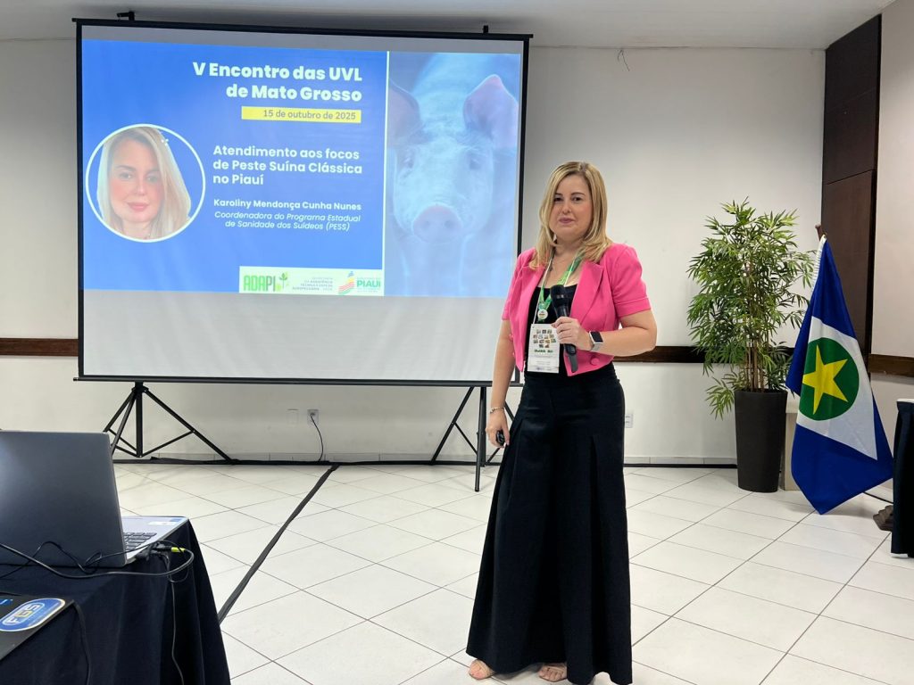 Nossa coordenadora do Programa de Sanidade Suídea, fiscal estadual agropecuária e médica veterinária, Karoliny Mendonça, participou do V Encontro das UVL’s de Mato Grosso, promovido pelo Indea (Instituto de Defesa Agropecuária do Mato Grosso), entre os dias 14 e 16 de outubro, em Cuiabá.