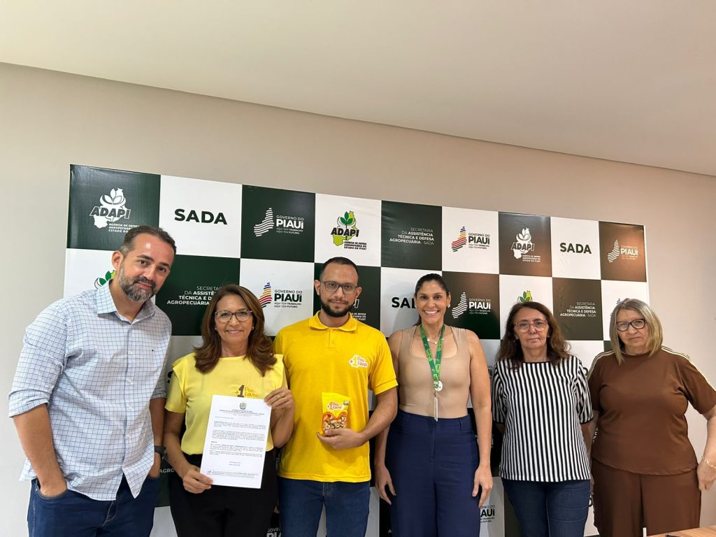 A Sada, por meio da Gerência de Inspeção Estadual da Agência de Defesa Agropecuária do Piauí, realizou o lançamento oficial do selo do Serviço de Inspeção Estadual (SIE), da unidade de beneficiamento de produtos cárneos “Mais um por favor” (+1 Por Favor), localizada em Floriano, em solenidade de assinatura do certificado do seu torresmo na sede da Sada, com a presença do secretário Fábio Abreu, diretor geral da Adapi João Rodrigues, gerente de inspeção da Adapi Gerlan Vieira e sua equipe e a proprietária da empresa +1 Por Favor Clívia Fonseca e seu gerente financeiro Mateus Fonseca Júnior.