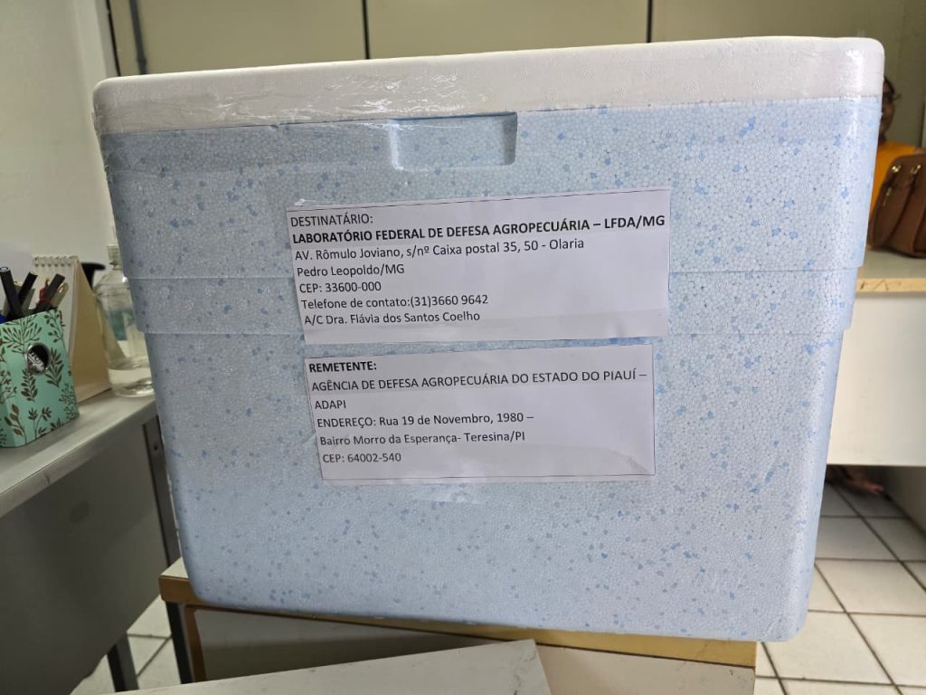 A Secretaria da Assistência Técnica e Defesa Agropecuária (Sada), por meio da gerência de defesa animal da Agência de Defesa Agropecuária do Piauí (Adapi), enviou na manhã de hoje, 10/12, 874 amostras de soro bovino de 129 propriedades de 105 municípios do Estado, para análise de brucelose a serem realizadas no Laboratório Federal de Defesa Agropecuária (LFDA) de Minas Gerais. Essa é a fase final do estudo soroepidemiológico de brucelose e tuberculose no Estado do Piauí que deve finalizar as últimas 13 propriedades em 6 municípios até o final dessa semana.O objetivo do estudo é identificar a situação epidemiológica de duas zoonoses, que afetam rebanhos e podem ser transmitidas para seres humanos, comprometendo a saúde pública e a produtividade agropecuária. Atualmente, o Piauí é classificado como zona de risco desconhecido para a brucelose e a tuberculose bovina. Com a conclusão do inquérito e a obtenção dos resultados laboratoriais, a Adapi terá um diagnóstico preciso da incidência das doenças no estado, o que permitirá solicitar junto ao Mapa a reclassificação sanitária do território piauiense.