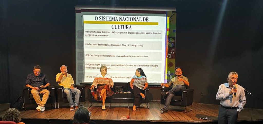Na ultima sexta-feira, dia 06, o Conselho de Cultura, representado por seus conselheiros e pelo presidente Nelson Nery Costa, participou do painel “Artes Cênicas: Rumos e Propostas”, parte das comemorações dos 130 anos do Theatro 4 de Setembro. O evento, organizado pelo diretor do Theatro e conselheiro João Vasconcelos, contou com a presença de Patrícia Mendes e Waldílio Siso, representantes do Ministério da Cultura, além dos artistas piauienses Lari Salles e Aci Campelo. Na ocasião, foram discutidos os desafios e as novas direções para as artes cênicas no Brasil, destacando a importância de políticas públicas para o fortalecimento do setor.