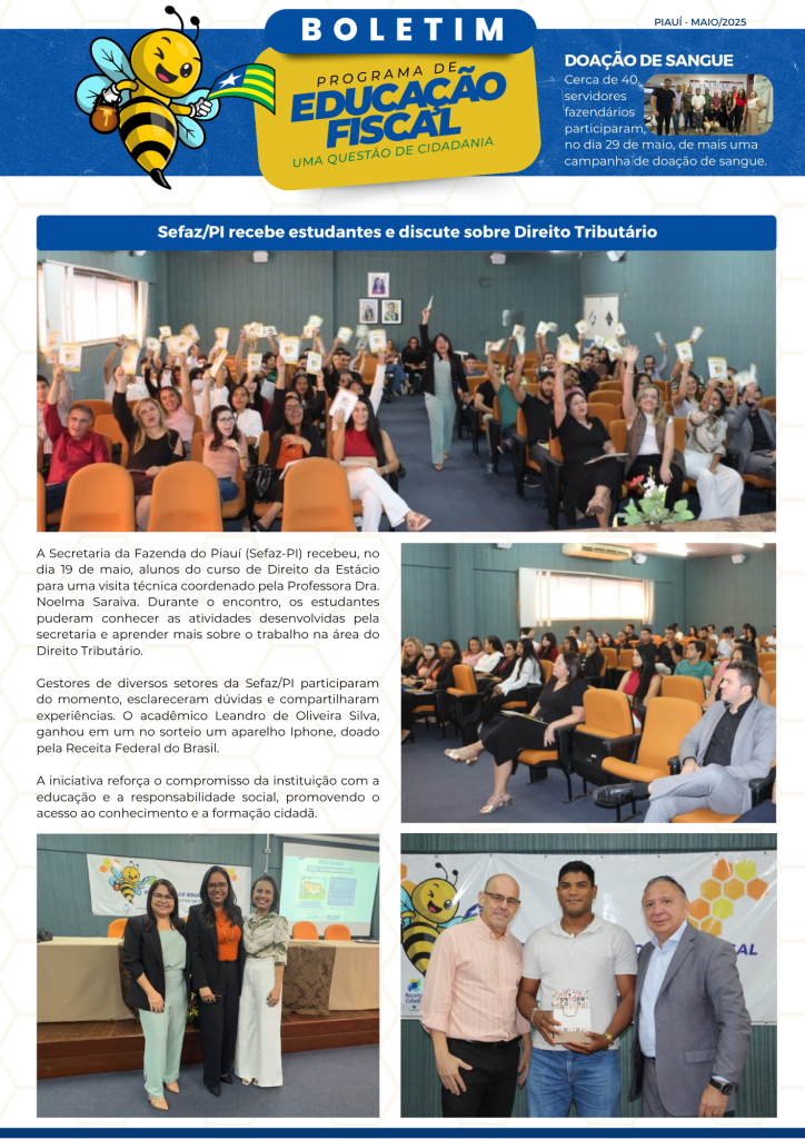 O Grupo de Educação Fiscal do Estado do Piauí (GEFE-PI), formado por representantes da Secretaria da Fazenda, Controladoria-Geral do Estado, Secretaria da Educação e Receita Federal, publicou, nesta sexta-feira (12), o Boletim Programa de Educação Fiscal com as ações realizadas no mês de maio.