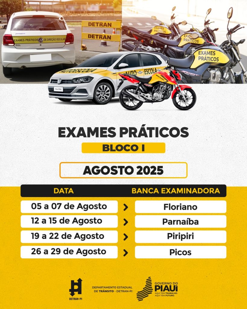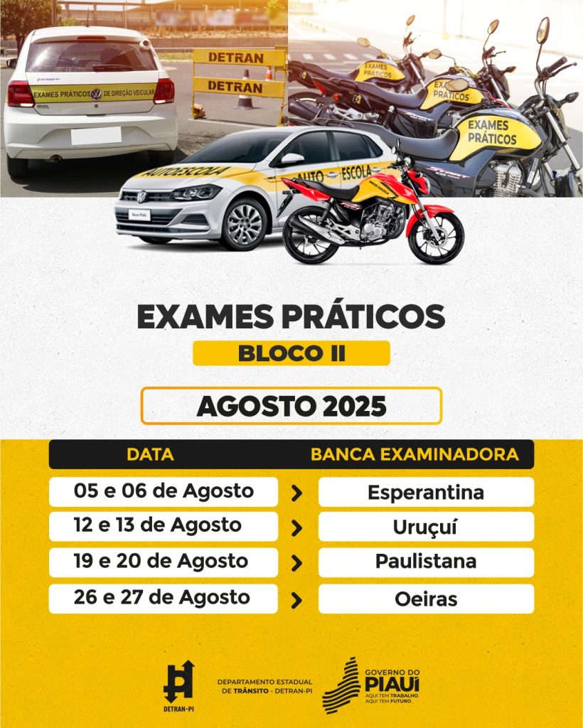 Detran-PI: Confira o cronograma de exames práticos para os meses de agosto e setembro de 2025