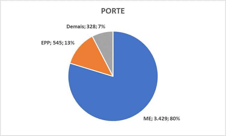 Porte – tamanho das empresas abertas: