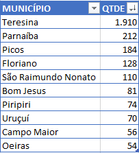 Ranking dos municípios:
