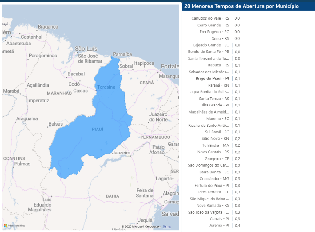 Atualmente, o Piauí se mantém como o estado mais rápido do Brasil no registro empresarial, levando apenas 5 horas e 37 minutos para constituir uma empresa, conforme dados do Ranking Geral da Rede Nacional para a Simplificação do Registro e da Legalização de Empresas e Negócios (REDESIM).