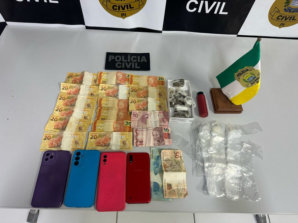 Durante o cumprimento da medida judicial, foi efetuada a prisão temporária da investigada, em razão de seu envolvimento no auxílio material à prática de roubos majorados ocorridos na região no ano passado. Além disso, N.A.M.D.N. foi autuada em flagrante delito pelo crime de tráfico de drogas, diante da apreensão de entorpecentes em sua residência, bem como de invólucros comumente utilizados para embalar drogas, dinheiro em espécie, aparelhos celulares, além de uma motocicleta utilizada na prática de crimes de roubo na zona sudeste de Teresina.