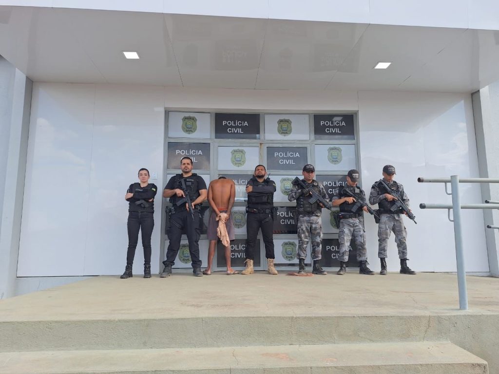 O preso e todo o material apreendido foram encaminhados à delegacia para a realização dos procedimentos legais cabíveis.
