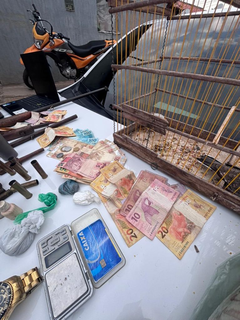 Durante a operação, foram cumpridos cinco mandados de busca e apreensão domiciliar. A ação resultou na prisão de quatro indivíduos e na apreensão de sete armas de fogo, munições, drogas, balanças de precisão, três pés de maconha, dinheiro em espécie, três motocicletas, sendo uma adulterada e um carro.