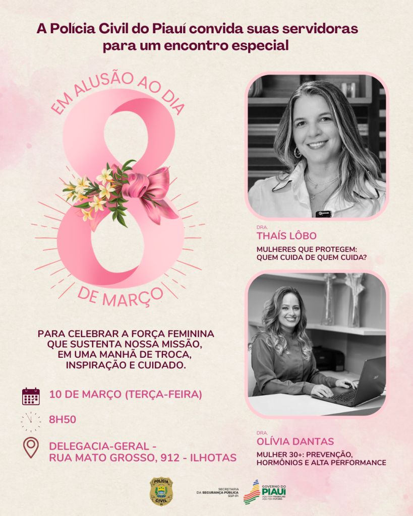 A Polícia Civil do Piauí reitera a importância de cada servidora dentro e fora da instituição, e desde já parabeniza todas as mulheres pelo seu dia.