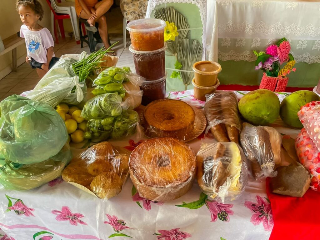 Entre os produtos entregues estão cheiro-verde, abóbora, maxixe, farinha, limão, manga, acerola, ovos, galinha e pimenta, entre outros itens. Os alimentos foram destinados à população em situação de vulnerabilidade socioassistencial das próprias comunidades quilombolas.