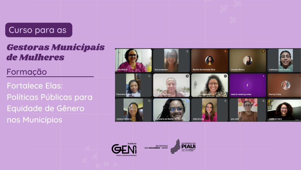 A Secretaria das Mulheres do Piauí (SEMPI), em parceria com o Instituto GENi, realizou nesta segunda-feira (14) mais uma atividade do segundo módulo da formação “Fortalece Elas: Políticas Públicas para Equidade de Gênero nos Municípios”. O encontro teve como tema “Intersetorialidade na prática: como transversalizar as políticas públicas para mulheres?”, e contou com a participação da secretária da Mulher e da Diversidade Humana da Paraíba, Lídia Moura, responsável por conduzir a aula.