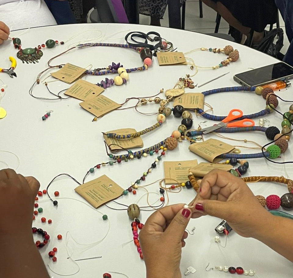 A artesã Rosália, responsável pela formação prática, destacou a dedicação das participantes. “Trabalho com sementes, palha, coco, couro e fibra de buriti, sempre buscando valorizar cada peça. Aqui na Casa, as alunas estão muito empenhadas. Algumas já produzem colares, brincos e pulseiras com criatividade e qualidade. Tenho certeza de que, ao final do curso, teremos muitas peças lindas e únicas”, afirmou.