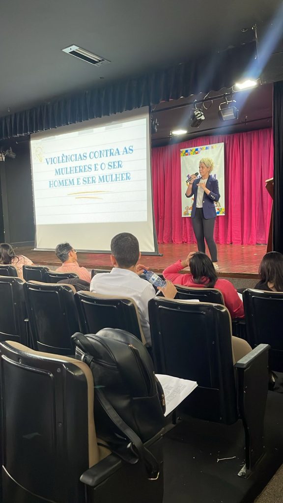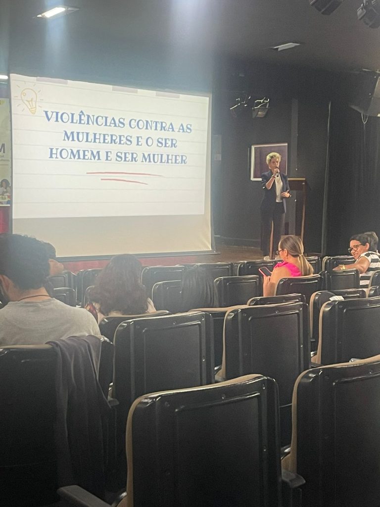 A coordenadora da Rede de Atendimento às Mulheres Vítimas de Violência da SEMPI, Jahyra Sousa, foi a palestrante da conferência. Também estiveram presentes a gerente de Articulação e Interiorização de Ações de Gênero da SEMPI, Adriana Ribeiro, e a gerente administrativa da secretaria, Telma Luísa.