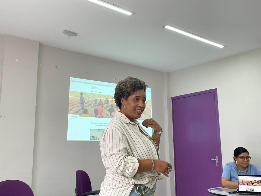 Ariana Britto é doutora e mestre em Economia pela Universidade Federal Fluminense (UFF), bacharela em Economia pela UNICAMP, pesquisadora associada do Centro de Estudos sobre Desigualdade e Desenvolvimento e membro da Rede de Economistas Pretas e Pretos. Na formação, ela destacou como a análise e gestão de dados são ferramentas fundamentais para embasar decisões estratégicas na formulação e avaliação de políticas públicas para mulheres.