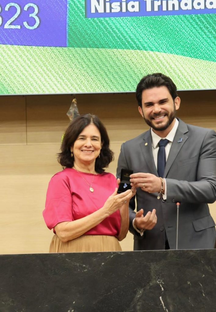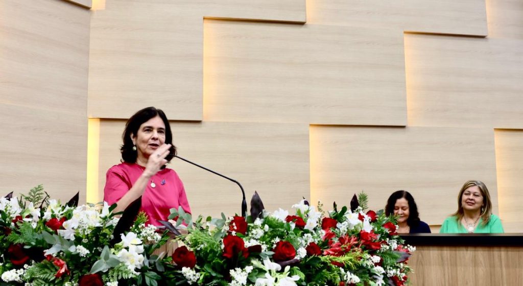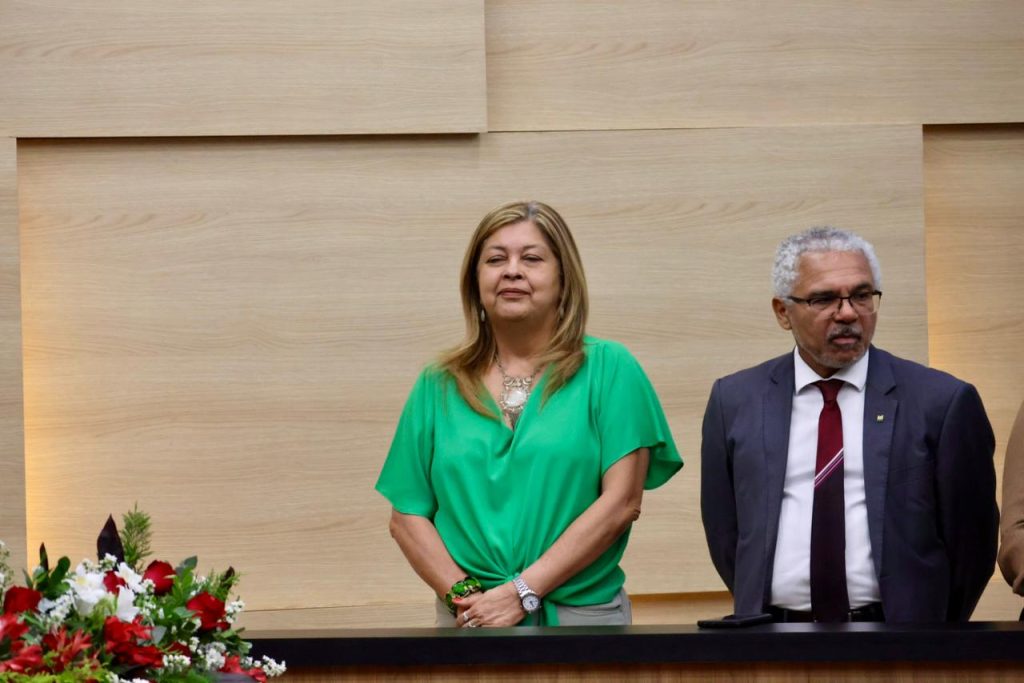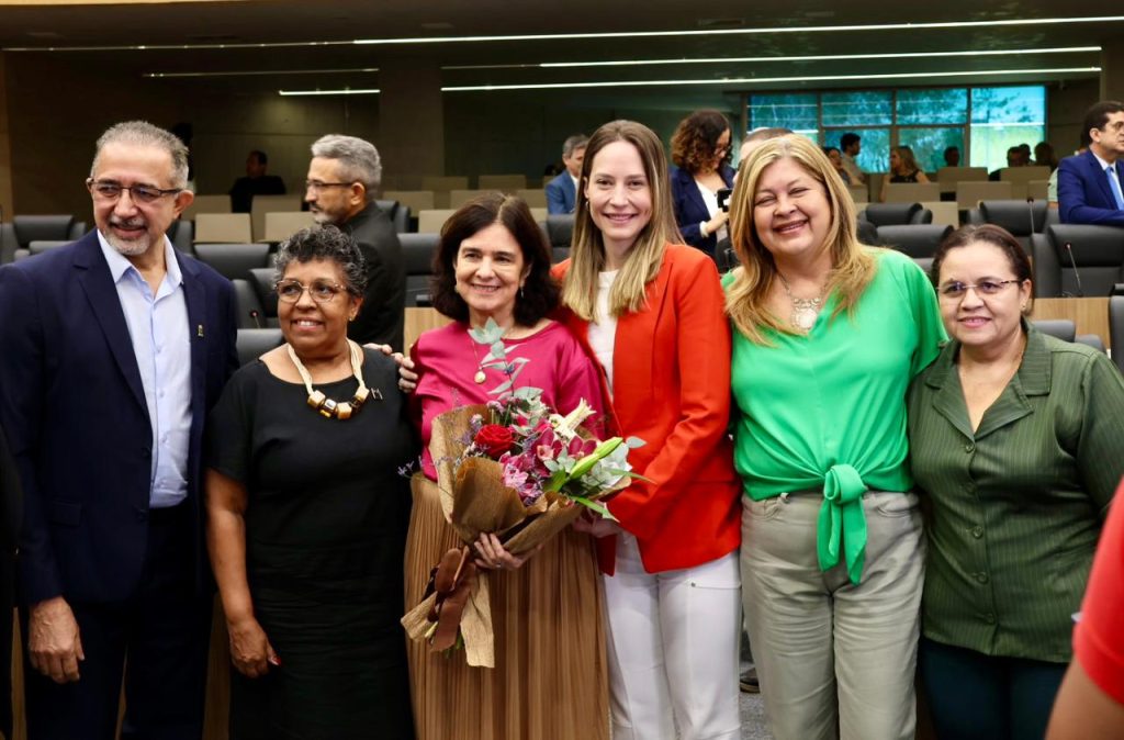 Nesta quarta-feira (24), a secretária das Mulheres do Piauí, Zenaide Lustosa, participou da solenidade de entrega do Título de Cidadã Piauiense à ex-ministra da Saúde, Nísia Trindade Lima, realizada na Assembleia Legislativa do Piauí (Alepi).