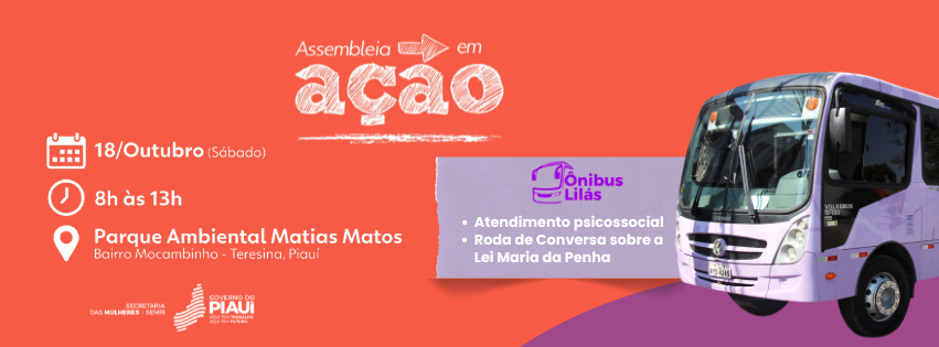A Secretaria das Mulheres do Piauí (SEMPI) participa, neste sábado, da primeira edição do Assembleia em Ação, evento promovido pela Rede Clube em parceria com a Assembleia Legislativa do Piauí (Alepi). A iniciativa vai oferecer uma manhã de serviços e atividades para a população no Parque Ambiental Matias Matos, localizado na zona Norte de Teresina.
