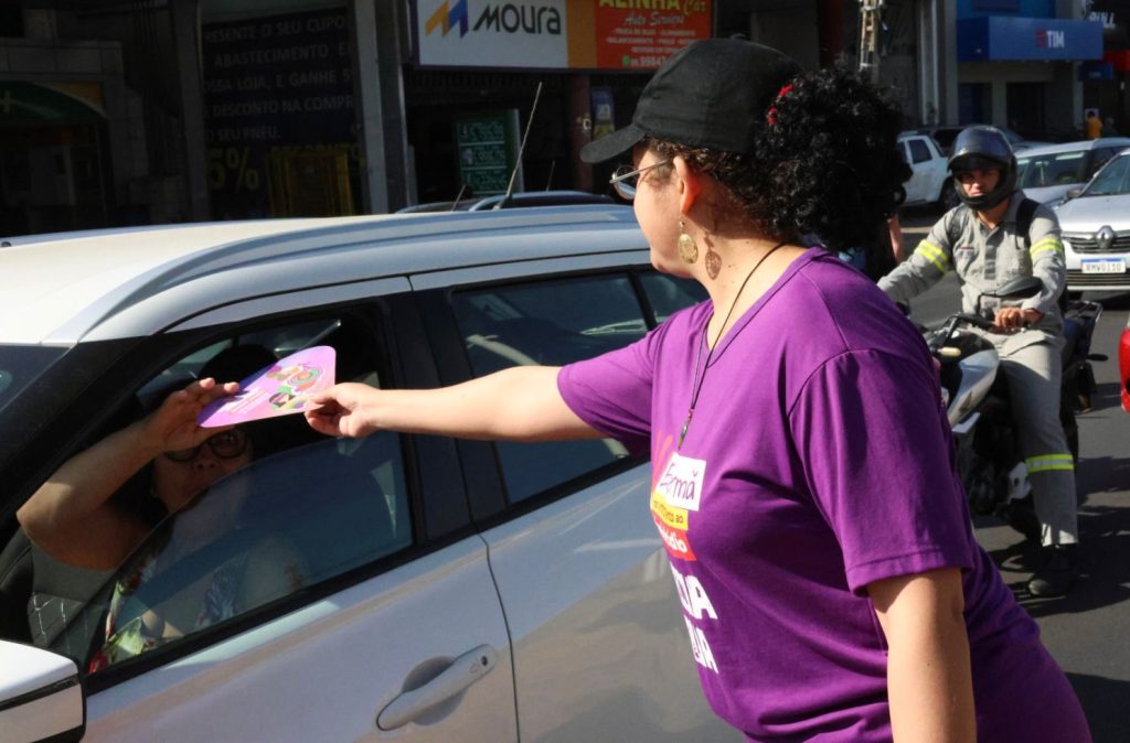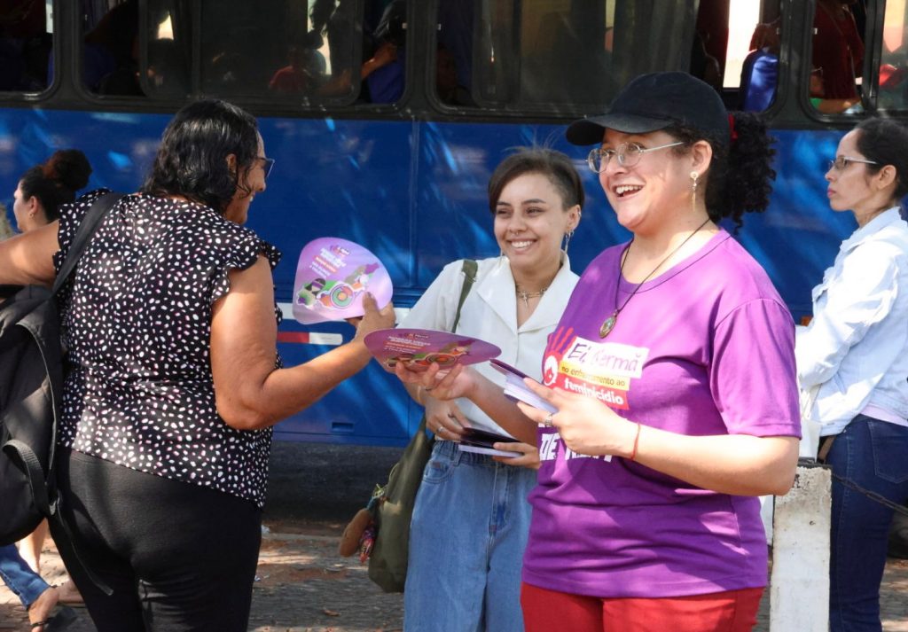 Durante a mobilização, a equipe da SEMPI dialogou com a população, distribuiu material informativo e divulgou os serviços de atendimento e apoio às mulheres em situação de violência disponíveis no estado.