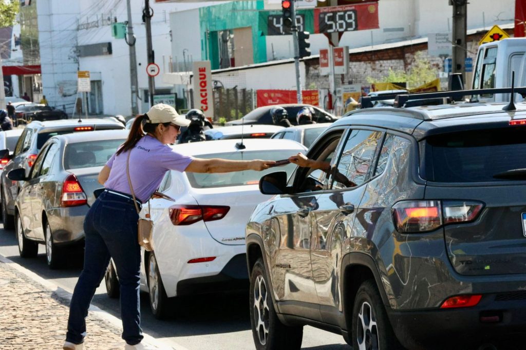 A Secretaria das Mulheres do Piauí (SEMPI) realizou, nesta terça-feira (25), uma Blitz Informativa na Avenida Frei Serafim, no Centro de Teresina, levando orientação, informação e acolhimento à população sobre o enfrentamento à violência contra as mulheres.