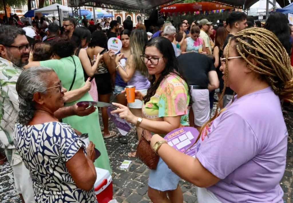 As ações começaram durante as prévias de Carnaval promovidas pela Secretaria Estadual de Cultura (Secult), no Centro de Teresina, e seguem em blocos privados, com distribuição de materiais informativos, orientações ao público e diálogo direto sobre respeito, consentimento e direitos das mulheres.