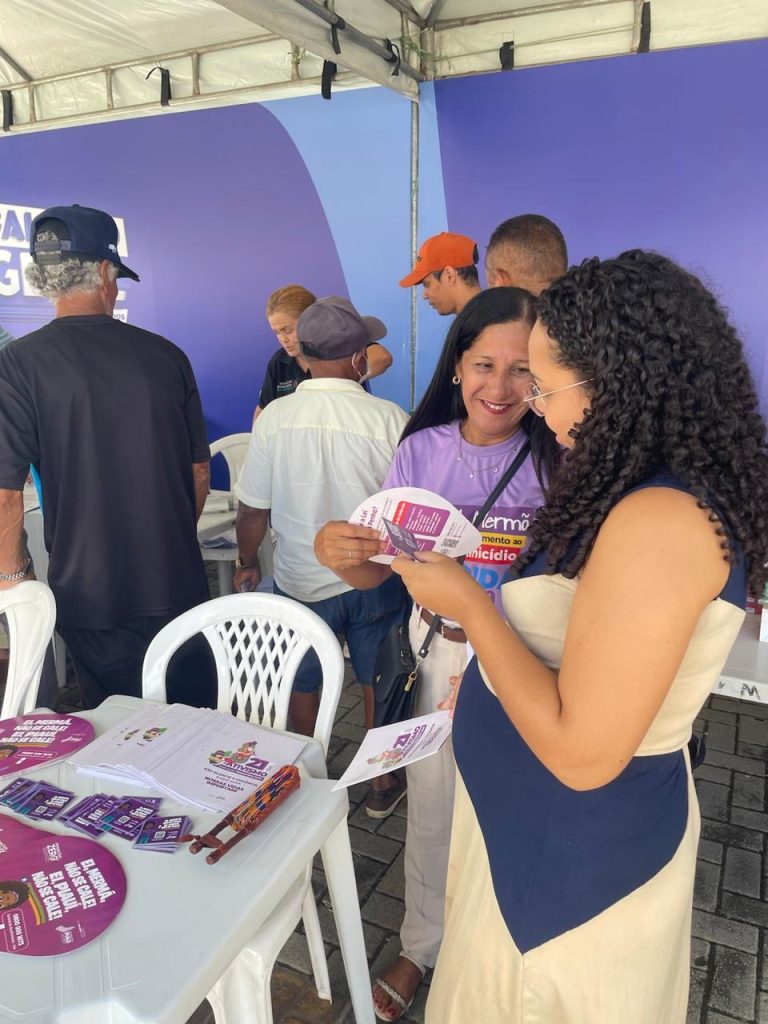 A Secretaria das Mulheres do Piauí (SEMPI) participou, nesta sexta-feira (06), do Balanço Geral nos Bairros, ação promovida pela TV Antena 10 que levou diversos serviços gratuitos à população no Complexo Esportivo Parentão, localizado no bairro Lourival Parente, zona Sul da capital.