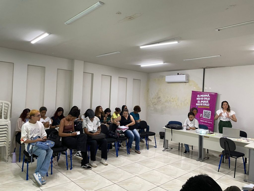 A Secretaria das Mulheres do Piauí (SEMPI) realizou, nesta sexta-feira (24), uma formação do projeto Maria da Penha nas Escolas com estudantes do curso de Ciências Sociais da Universidade Estadual do Piauí (UESPI). A intenção é ampliar o alcance do projeto por meio da parceria com a universidade, envolvendo discentes na abordagem de teorias de gênero e na qualificação pedagógica de futuros educadores para o enfrentamento à violência contra as mulheres no ambiente escolar.
