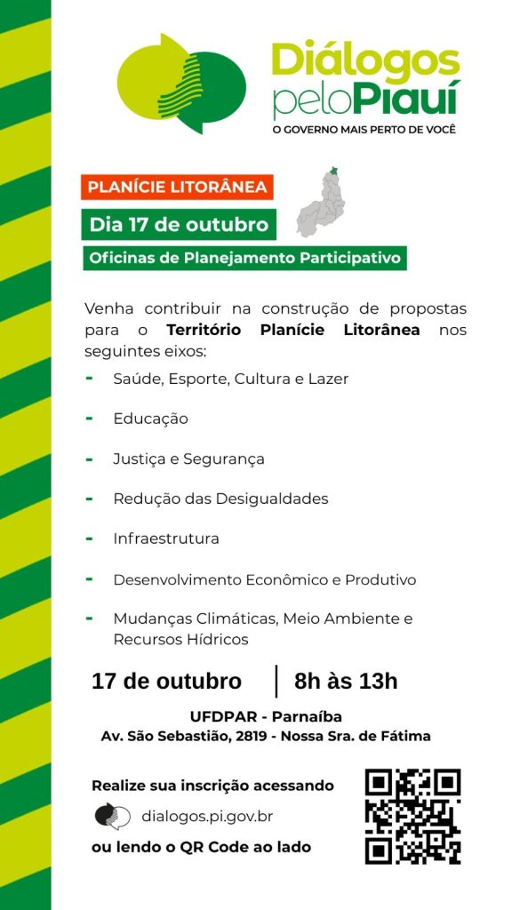 Para participar do evento é necessário fazer a inscrição através do site https://dialogos.seplan.pi.gov.br/. Participe!