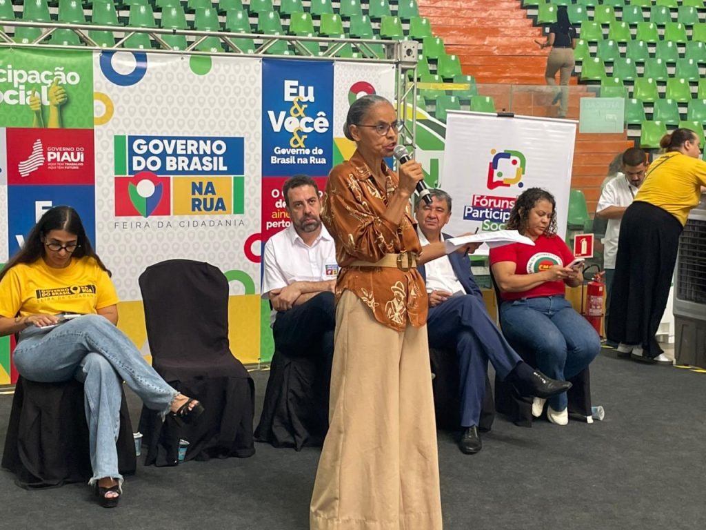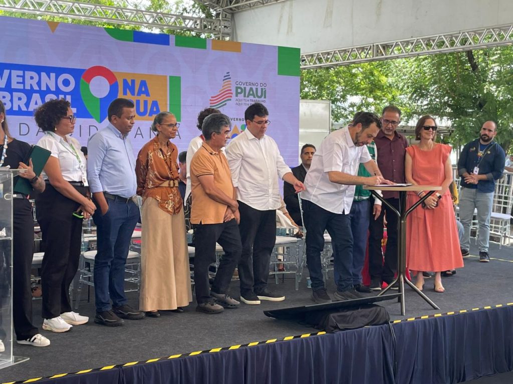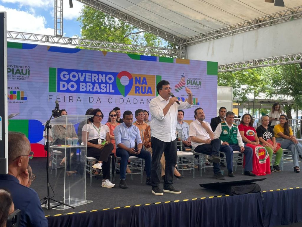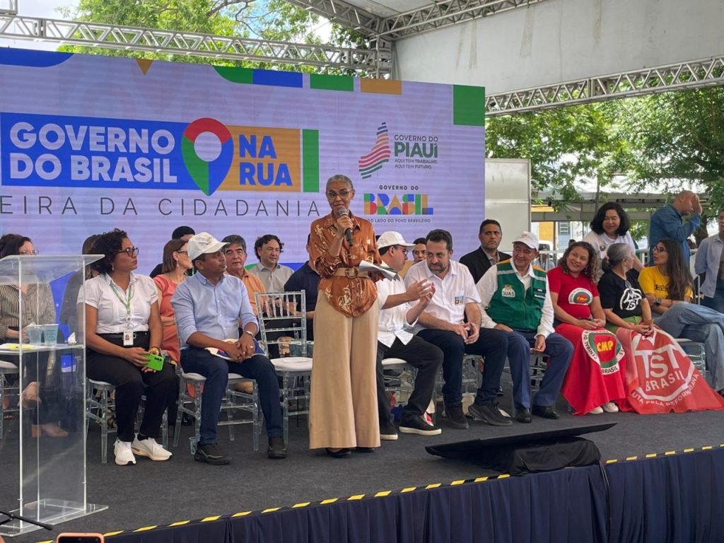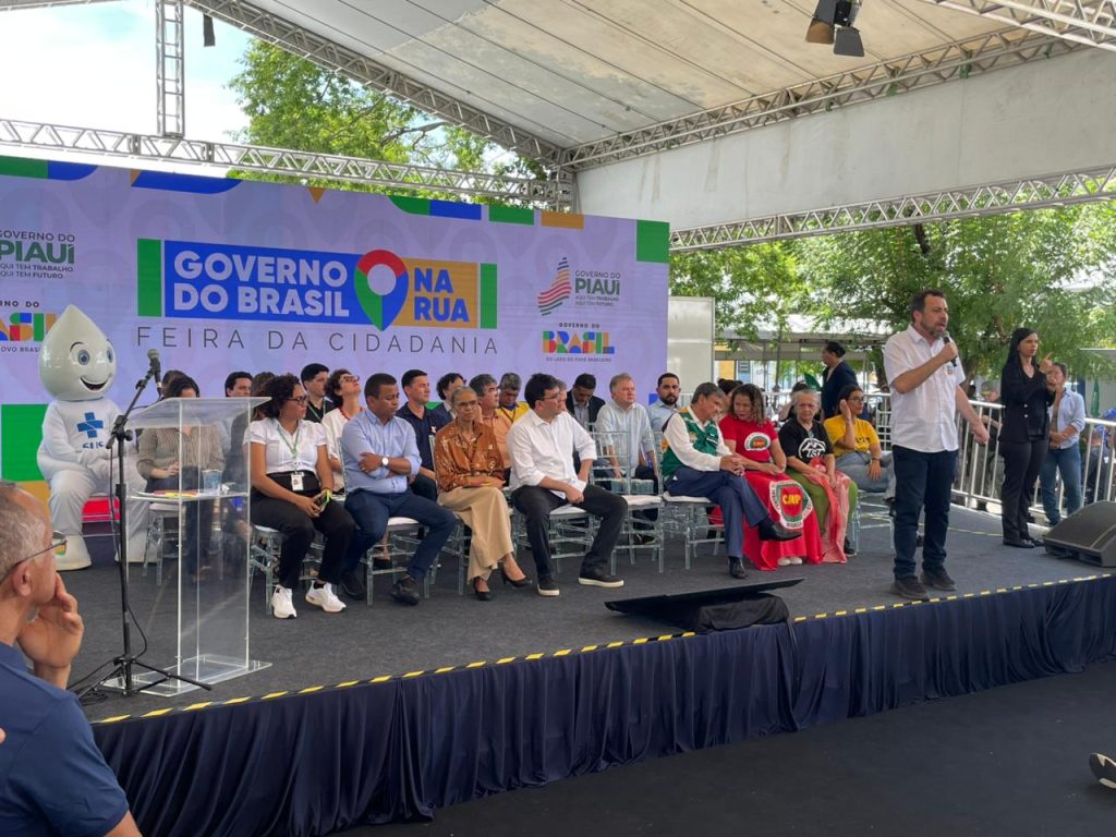A sétima edição do programa Governo do Brasil na Rua, iniciativa do governo federal, está sendo realizada em Teresina, nesta sexta (6) e sábado (7), no Ginásio Arena Verdão. A abertura oficial foi realizada nesta manhã com a presença do ministro da Secretaria-Geral da Presidência da República, Guilherme Boulos, do ministro do Desenvolvimento e Assistência Social, Família e Combate à Fome, Wellington Dias, da ministra do Meio Ambiente, Marina Silva, do governador Rafael Fonteles, da secretária de Relações Sociais, Núbia Lopes, e demais autoridades.