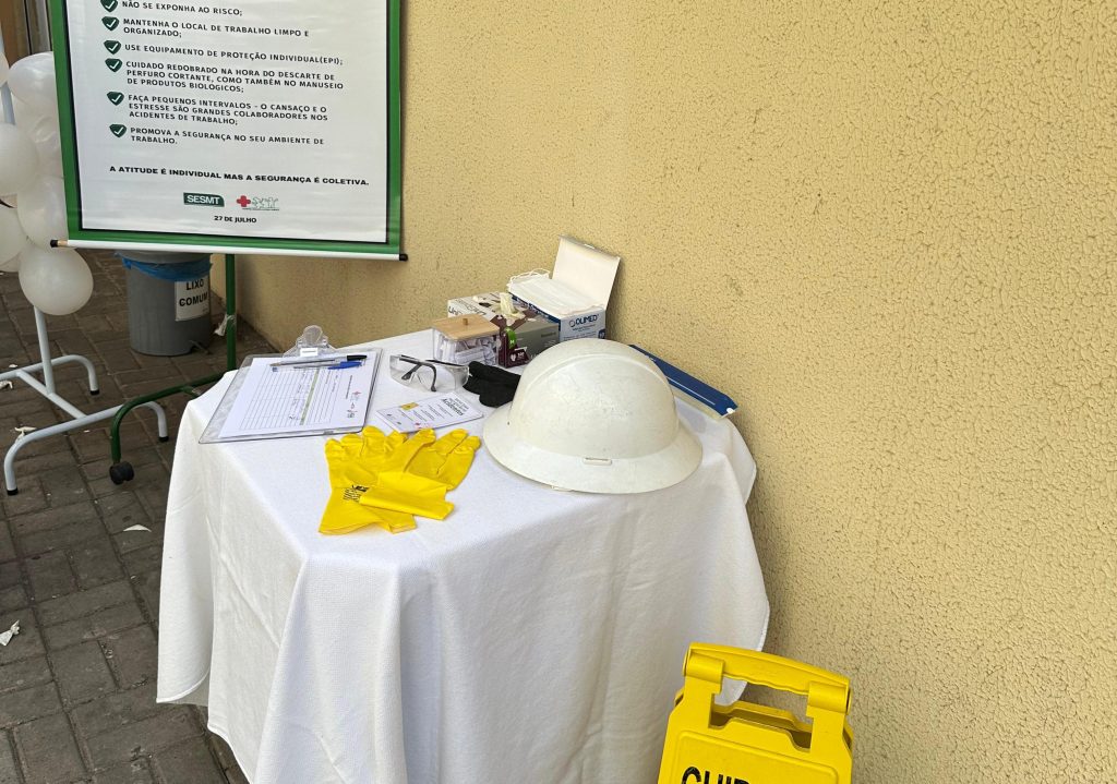 A blitz ocorreu no pátio do hospital e foi conduzida pela equipe do SESMT, sob coordenação da Enfermeira do Trabalho, Leila Mariane Torres. “A iniciativa teve como foco orientar os colaboradores sobre a importância do uso correto dos Equipamentos de Proteção Individual (EPIs), reforçando o compromisso da instituição com a promoção da saúde ocupacional e a prevenção de acidentes”, informa a enfermeira.