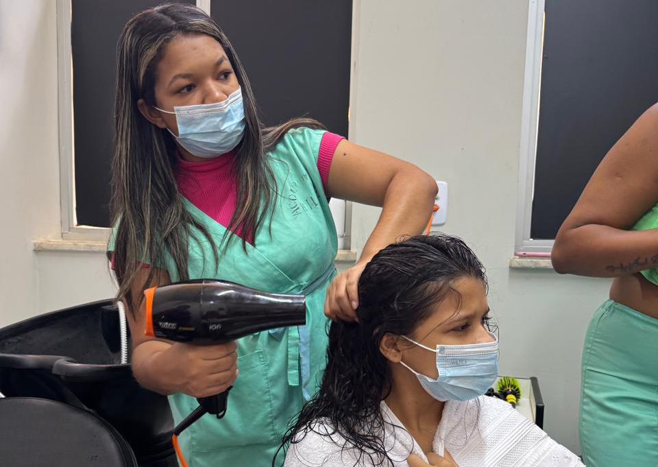 Instalado no primeiro andar, próximo às enfermarias dos postos heróis e animais, o espaço é simples, mas carrega um valor imenso: proporcionar um momento de autocuidado e elevação da autoestima para aquelas que dedicam seus dias à luta pela saúde dos filhos. “O ambiente foi pensado para proporcionar momentos de cuidado, autoestima e qualificação profissional às mães que residem temporariamente com seus filhos em tratamento prolongado”, informa a diretora geral do HILP, Leiva Moura.