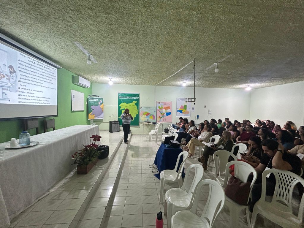 Durante a capacitação, foram apresentadas orientações sobre como realizar a estratificação de risco e a conduta adequada para cada cenário identificado pelos profissionais.