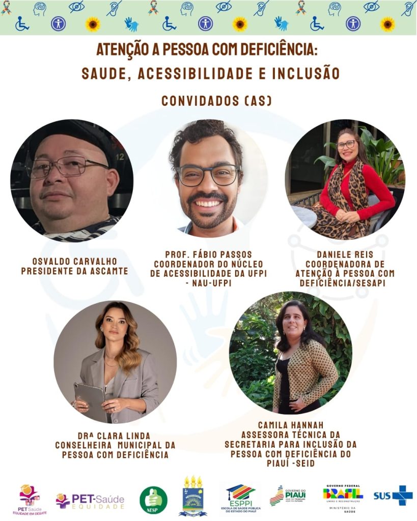 A Secretaria da Saúde do Piauí (Sesapi), por meio do Programa de Educação pelo Trabalho para a Saúde (PET-Saúde Equidade), realizará, na próxima segunda-feira (29), o evento “PET-SAÚDE em Debate: Atenção à Pessoa com Deficiência”. A atividade acontecerá no Auditório Afonso Sena – CCN, Campus Ministro Petrônio Portella da UFPI, das 8h às 12h.