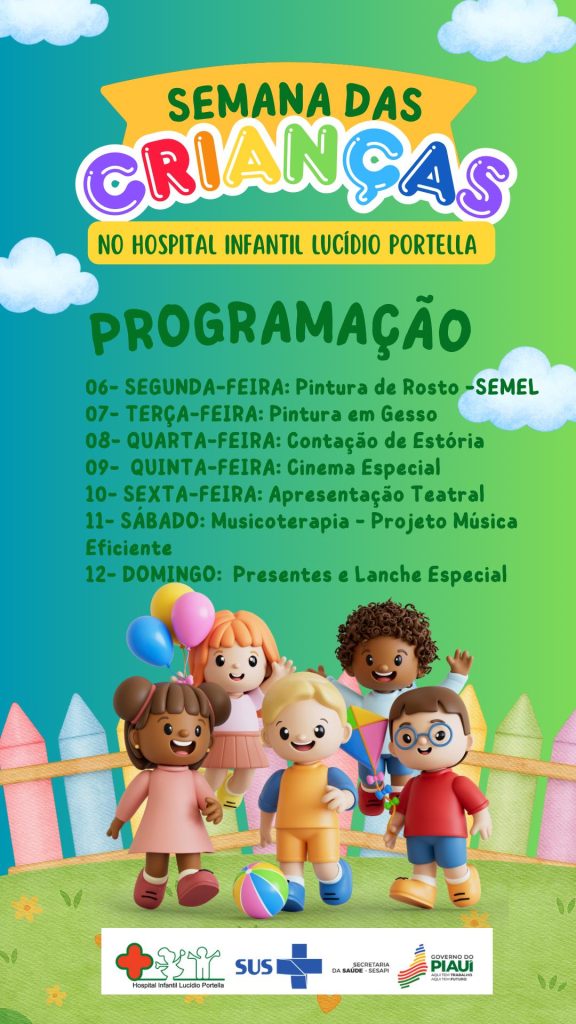O Hospital Infantil Lucídio Portella, (HILP), referência em atendimento pediátrico no Piauí, realiza a partir desta segunda-feira (06) a Semana das Crianças, com uma programação especial que segue até o próximo domingo (12). A abertura oficial acontece às 14h, com pintura de rosto promovida pela equipe do Serviço Social em parceria com a Secretaria Municipal de Esporte e Lazer (Semel) de Teresina.