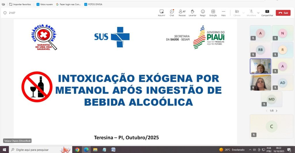 A Secretaria de Estado da Saúde (Sesapi), por meio da Diretoria de Vigilância Sanitária do Estado (Divisa), reuniu profissionais das Vigilâncias Sanitárias Municipais para alinhar orientações sobre a condução e notificação de possíveis casos de intoxicação por metanol após o consumo de bebidas alcoólicas adulteradas no Piauí.