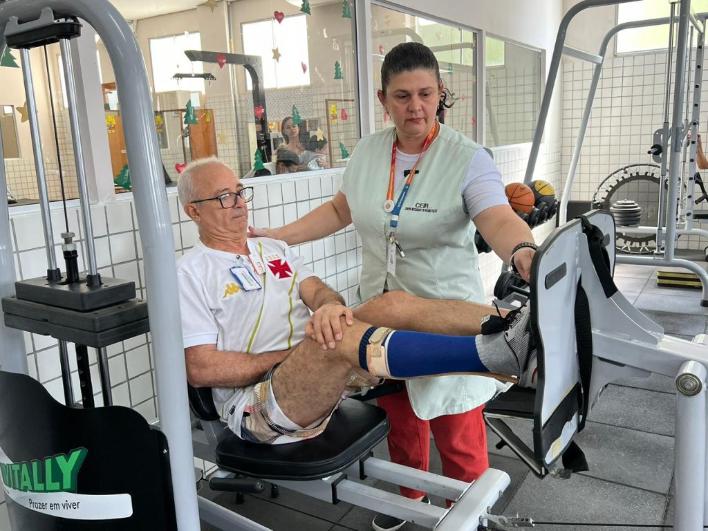 “Ele chegou com amplitude de movimento muito reduzida e pouco condicionamento físico. Hoje está quase recebendo alta. Recuperou força, equilíbrio, independência e é um paciente muito ativo”, conta a educadora física.